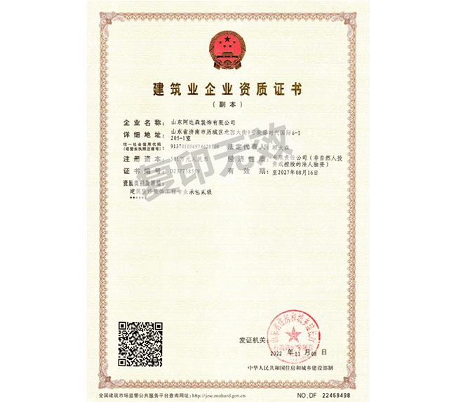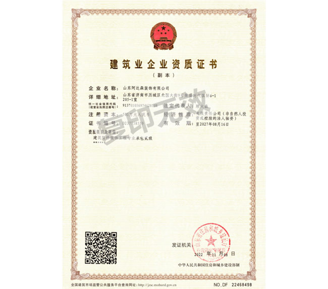 ??阿达森装饰对设计、材料、工艺等方面进行全程监控,为您打造低碳的理想家园,清新安适的办公环境,新颖独特的商业空间。实现您对低碳环保生活的理想追求,山东阿达森装饰有限公司是您正确的选择,因为我们一直用心在做,我们真诚期待与您的合作!